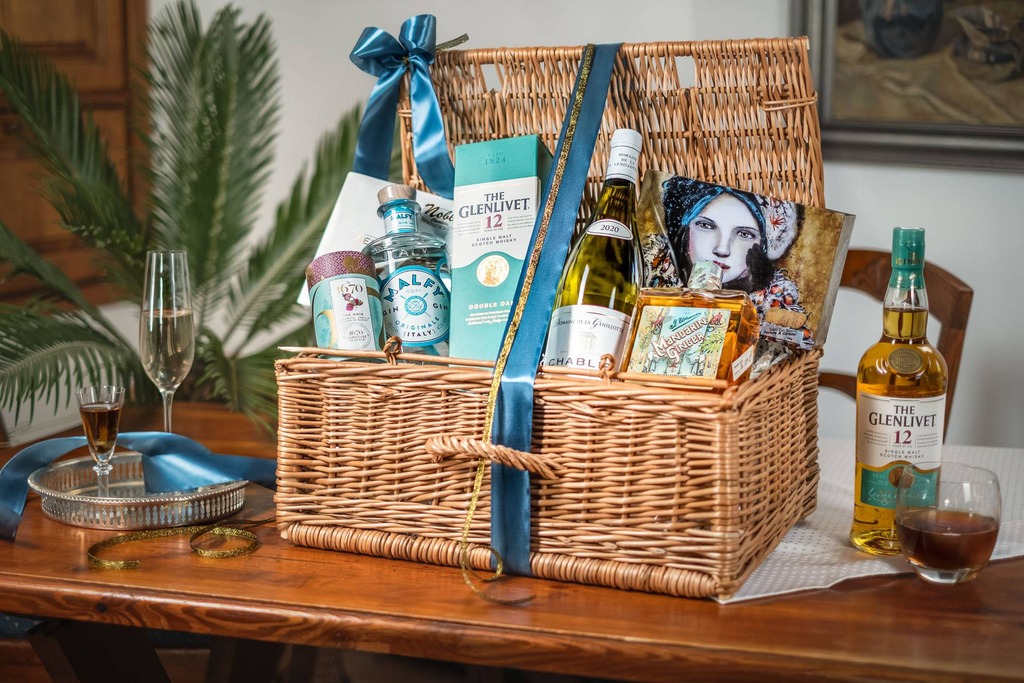 Alkohole znakomicie prezentują się z rzemieślniczą czekoladą, pralinami, czy ciasteczkami lub torcikiem. Takie elementy można zapakować również w wielki, szklany, kulisty wazon, jednak wymaga to dokładnego zabezpieczenia, aby móc dowieść pakunek w całości.