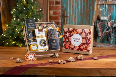 Piernikowo-Orzechowy – uniwersalny prezent bez alkoholu z lukrowanymi piernikami na choinkę, nadziewanymi pierniczkami, miodem oraz bakaliami. Iście świąteczna propozycja.