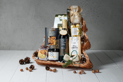 Kulig – zestaw w unikatowym koszu w kształcie choinki, a w nim: wino oraz polskie i zagraniczne słodycze, a także bakalie i niepowtarzalne przetwory stworzone z myślą o najbardziej wymagających smakoszach!
