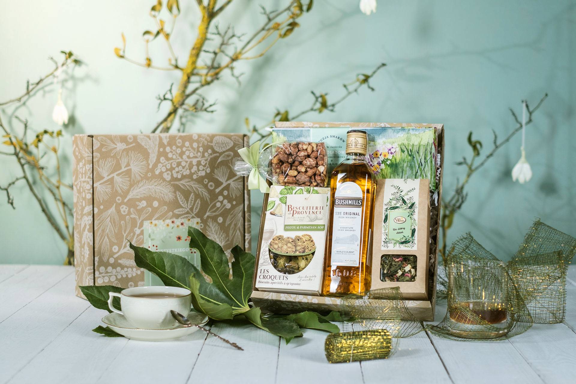 Pamiętacie Wodnika Szuwarka? To postać z czechosłowackiej bajki dla dzieci, która zagościła w sercu wielu dzieci i dorosłych w czasach, kiedy nie każdy miał już kolorowy telewizor. Nasz zestaw nawiązuje do tego poczciwego mieszkańca stawu Szmaragdowe Oczko - jest utrzymany w zielonej kolorystyce, a całości dopełniają roślinne elementy. Co skrywa ten box wielkanocny? Whisky, zieloną (a jakże) herbatę oraz coś do pochrupania - orzeszki, kruche ciasteczka i pyszne francuskie krakersy. Ten zestaw prezentowy dla niego sprawdzi się jako prezent na Dzień Ojca, a także jako paczka pracownicza na święta. Poczuj wspomnień czar z naszym boxem Wodnik Szuwarek!