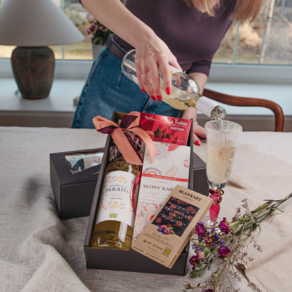 Wybierając zestaw walentynkowy, nie musisz martwić się o aranżację prezentu. Wszystkie produkty są elegancko zapakowane w piękne kosze lub koszyki, które dodadzą jeszcze więcej uroku temu wyjątkowemu dniu. Ponadto możesz dodać do prezentu kartkę z dedykacją lub życzeniami, a także konkretnymi produktami co z pewnością sprawi, że Twój prezent będzie jeszcze bardziej osobisty.